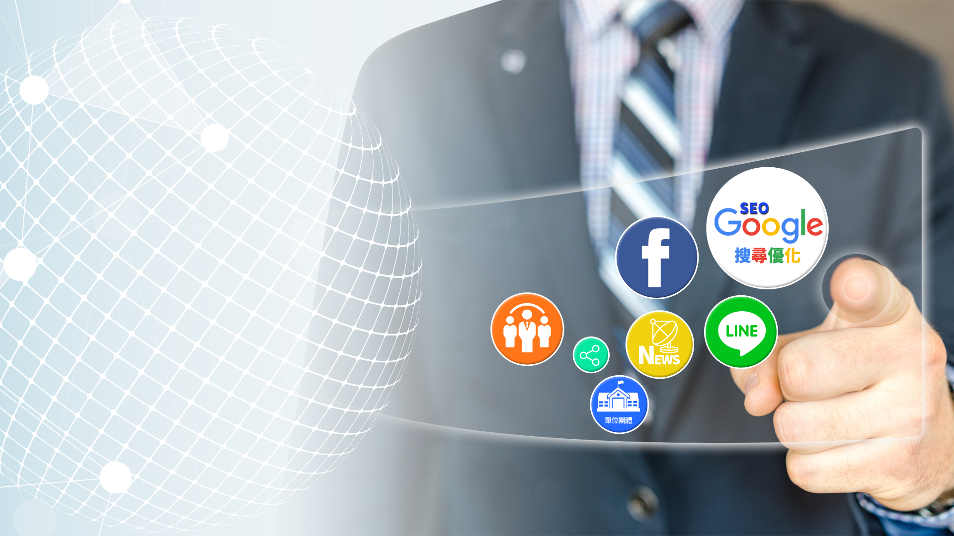 整合媒體、SEO優化、FB社群網絡,讓品牌在搜尋排行、社群媒體的曝光最大化,並結合多樣平台與眾多業務群, 讓行銷推廣更準確,營收成長更穩定。