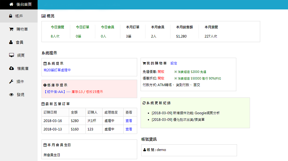 最簡單且完善功能,您可以輕鬆管理與銷售您的產品,後台親民化順暢理貨、出貨流程,報表清單一覽無疑。